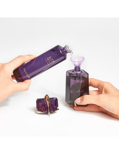 Thierry Mugler Angel Eau de Parfum es un vaporizador recargable que forma parte de un proyecto de sostenibilidad único de la marca e iniciado con el lanzamiento de Angel. Desde 1992, MUGLER se ha comprometido con el lujo responsable creando fragancias recargables a través de sus fuentes o frascos de rellenado que permiten que cada frasco sea una verdadera joya eterna.