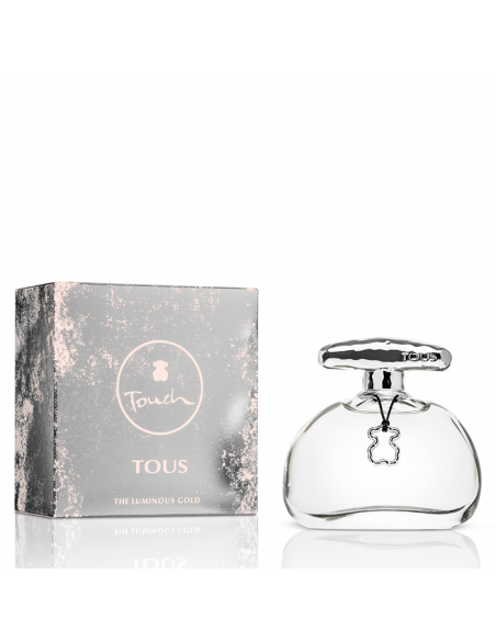 El frasco de Touch The Luminous Gold continúa la misma línea de Tous Touch, en forma de prisma redondeado, clásico, elegante y moderno. Una botella de vidrio coronada por un tapón plateado hecho a mano. De su cuello, cuelga el icónico oso de Tous a modo de colgante.