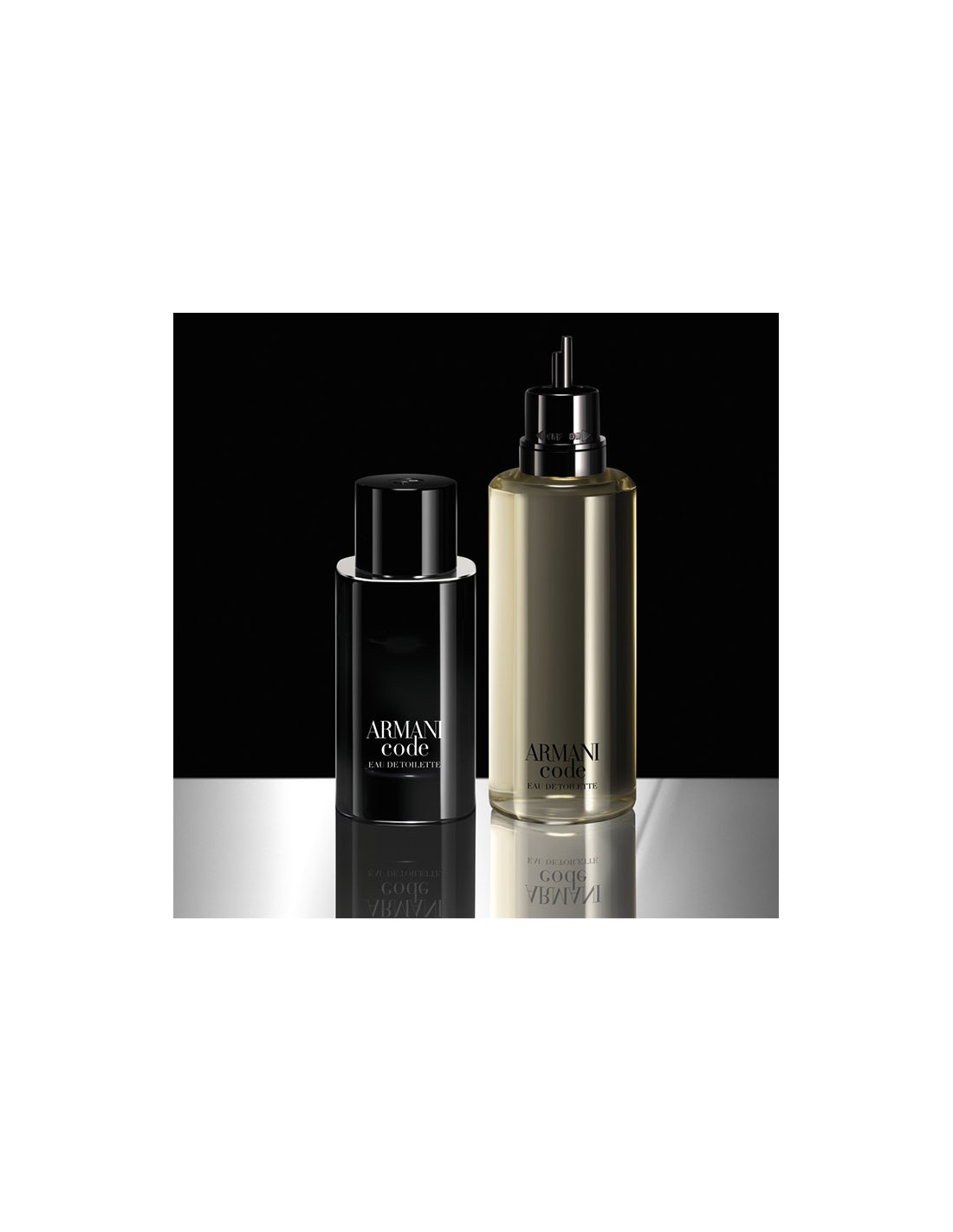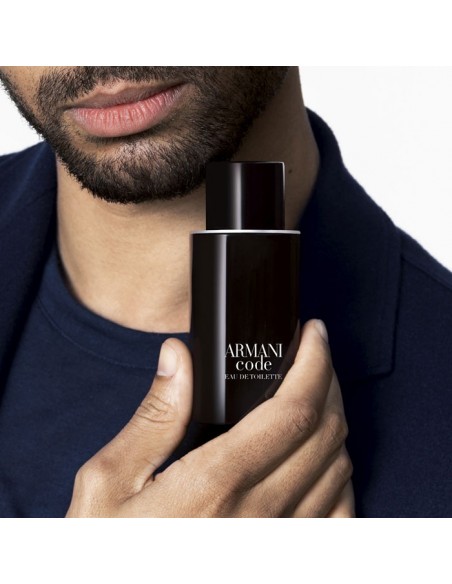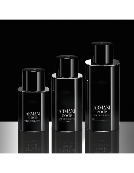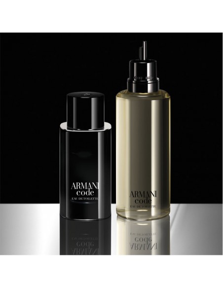El frasco de Armani Code Eau de Toilette tiene una forma única, redondeada, elegante y masculina, realzada por reflejos plateados y experiencias sensoriales. Su diseño, creado para perdurar, es recargable en todos los tamaños de vaporizador.