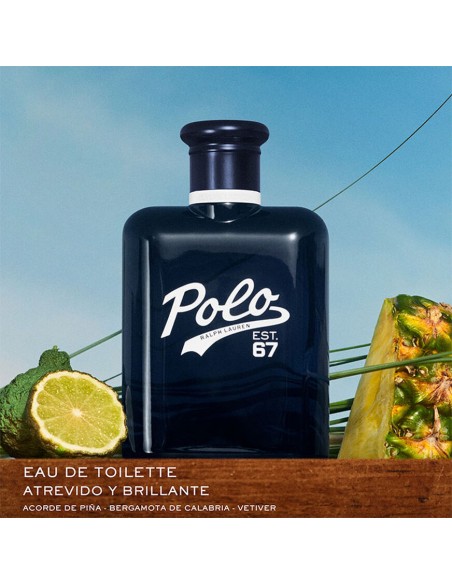 Perfil olfativo : Polo EST. 67 Eau de Toilette combina cítricos frescos y cálidas notas amaderadas creando un aroma poderoso e innegablemente masculino. Irradiando frescura a través de notas curadas de bergamota de Calabria, acorde de piña y vetiver terroso, Polo EST. 67 EDT es sensualidad empapada de calidez.