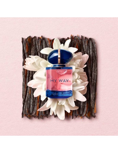 My Way Intense te invita a salir a descubrirte a ti mismo, en un viaje hecho de encuentros llenos de significado y experiencias importantes. Una floralidad amplificada en una estela amaderada persistente, basada en ingredientes de fuentes sostenibles. La fragancia se abre con notas brillantes de azahar de Egipto. Un nuevo e intenso corazón de nardos de la India revela un lado suave y aterciopelado de la firma floral. En la parte inferior, la sandalia de Nueva Caledonia adquiere un carácter irresistiblemente cremoso gracias al encuentro con la voluptuosa vainilla de Madagascar.