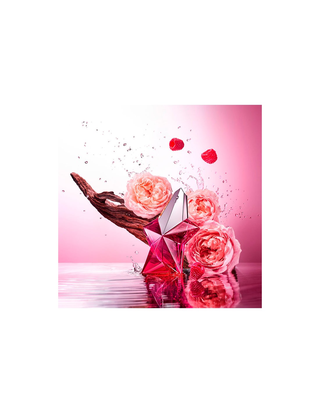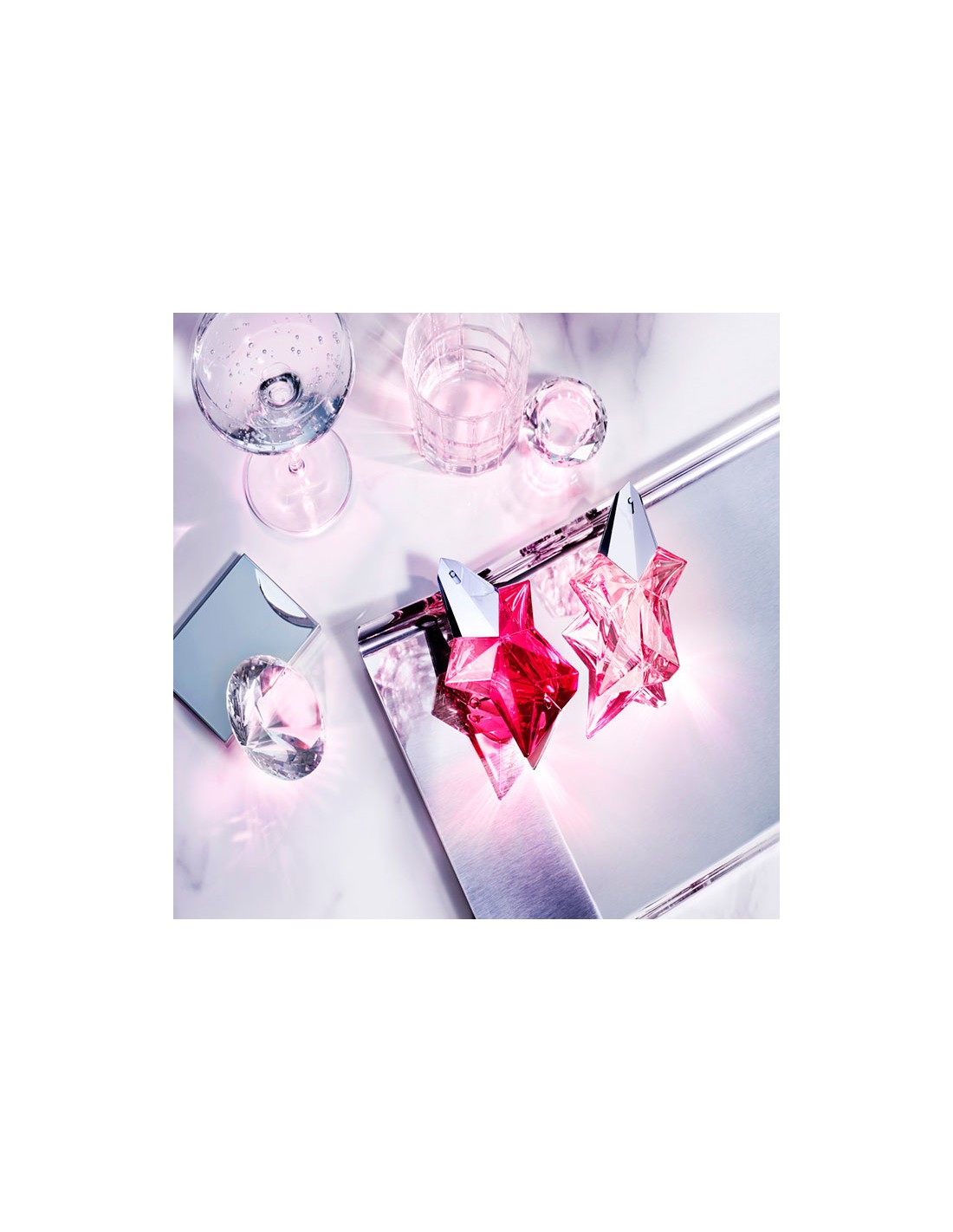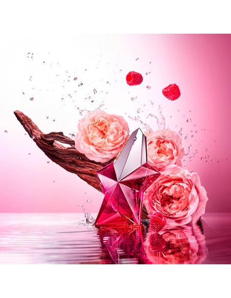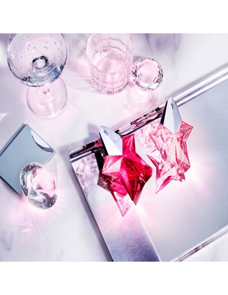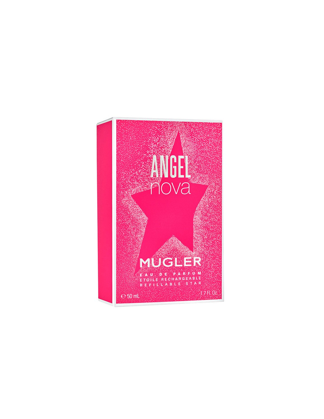 El frasco que guarda el jugo seductor de Mugler Angel Nova, forma una estrella mágica y divina, caída de la propia galaxia para brillar en cada momento. Una potente botella de cristal teñida en un color rosado transparente, como su ingrediente principal la rosa damascena.